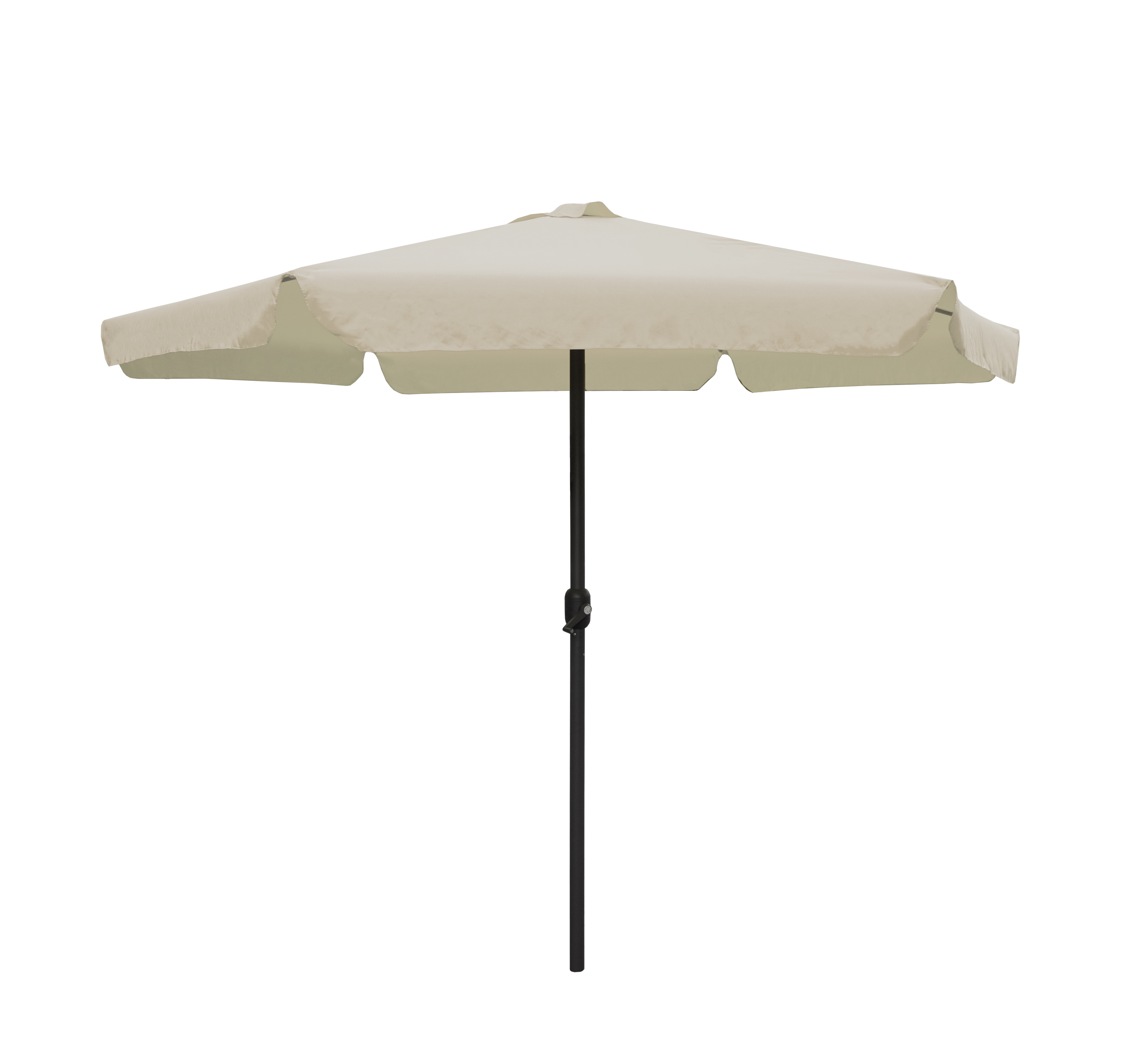 Ein klassischer Gartenschirm mit einer soliden Konstruktion und einem hochwertigen Bezug aus strapazierfähigem Polyestermaterial.