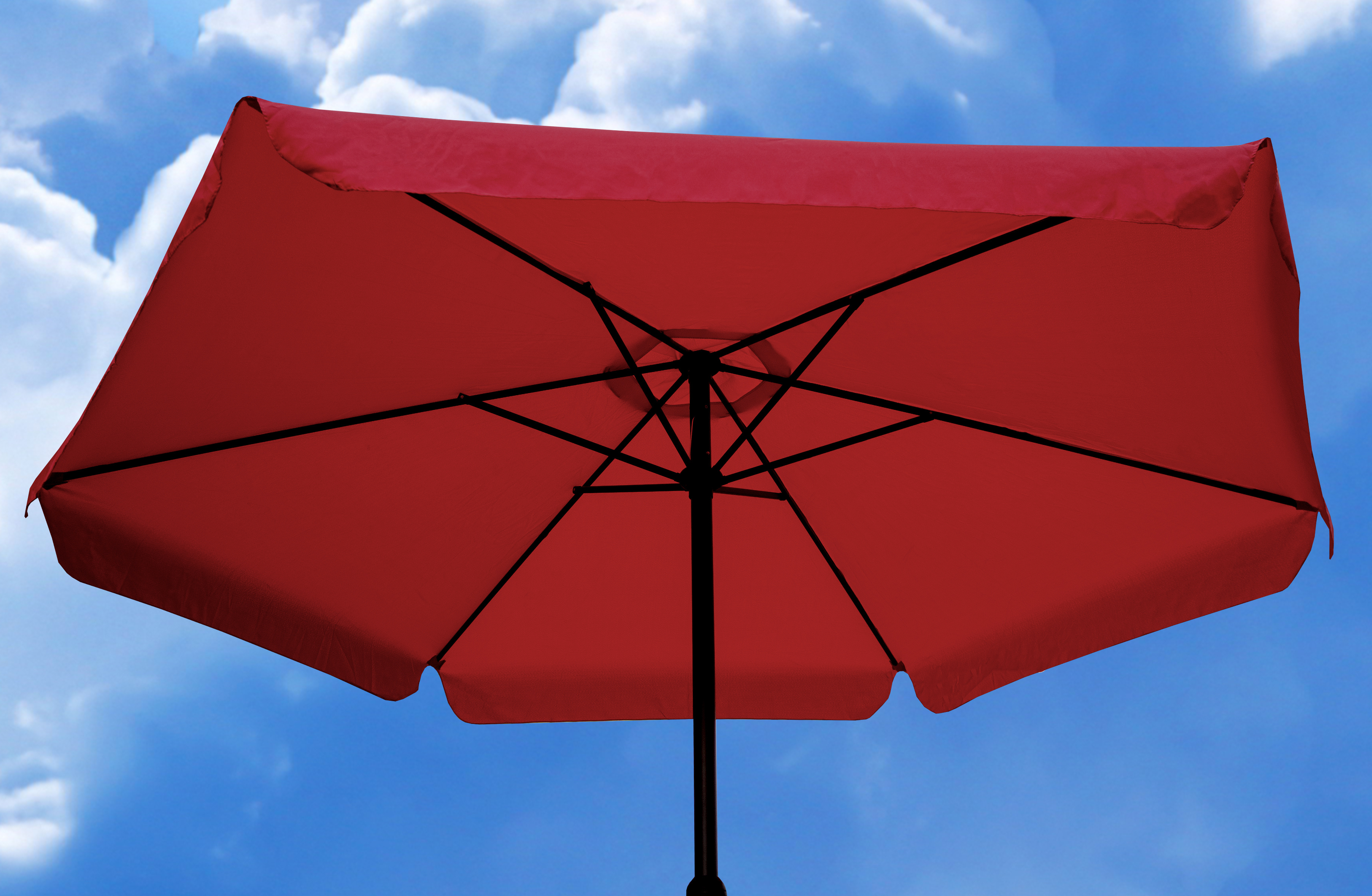 Ein klassischer Gartenschirm mit einer soliden Konstruktion und einem hochwertigen Bezug aus strapazierfähigem Polyestermaterial.