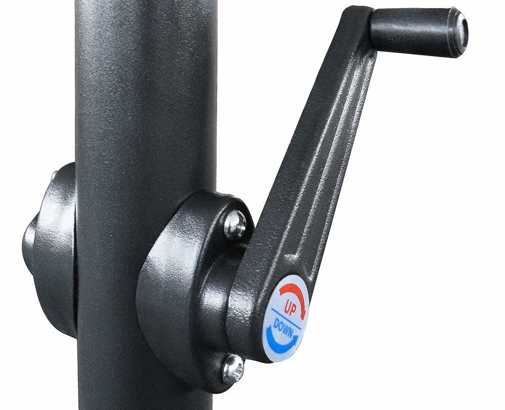 Ein einfacher Kurbelmechanismus sorgt für eine leichte Handhabung beim Auf- und Zusammenklappen des Sonnenschirms.