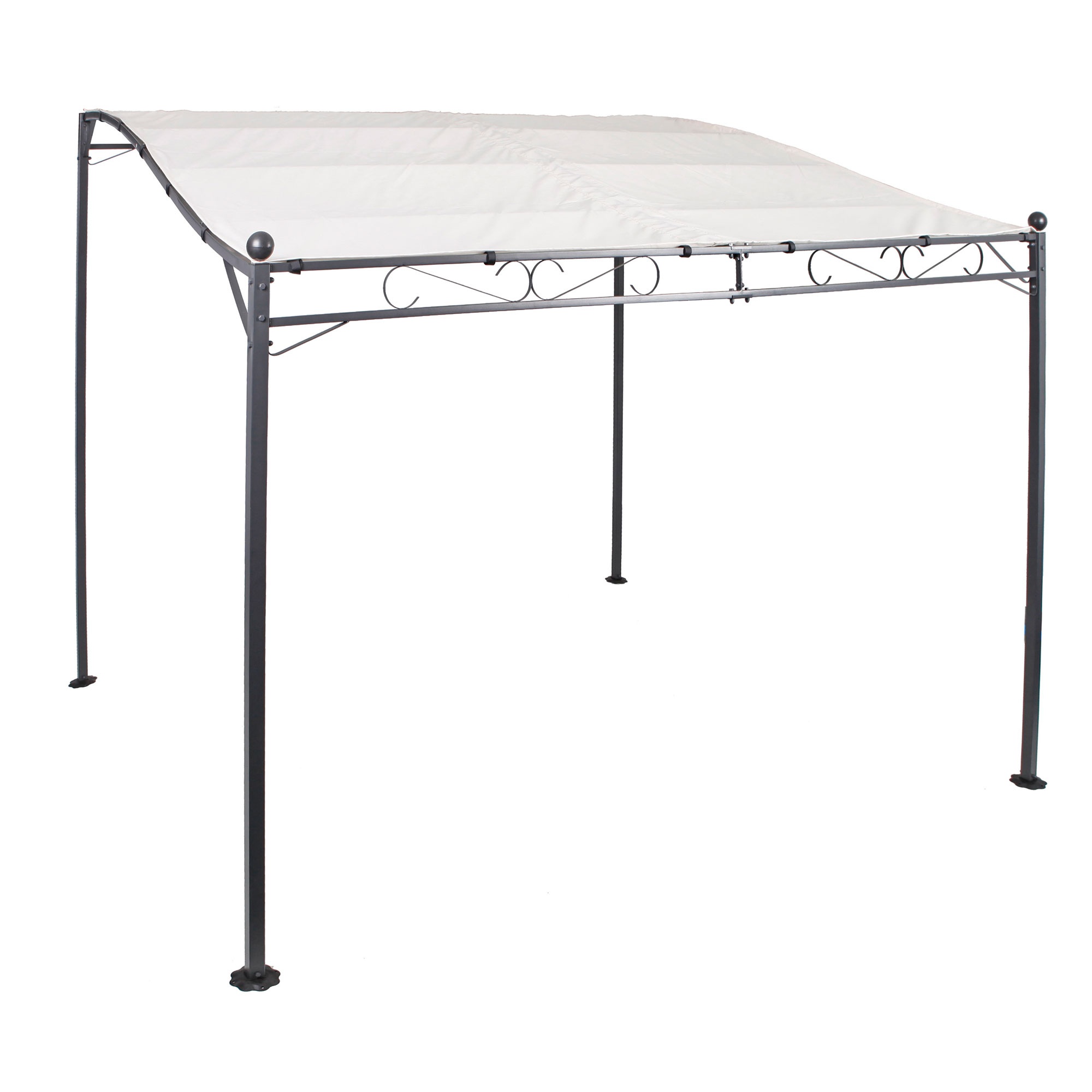 Setzen Sie den Pavillon keinen schweren Stürmen oder Hagel aus. Bei diesem Wetter empfiehlt es sich, das Ganze zusammenzufalten und zu verstecken.