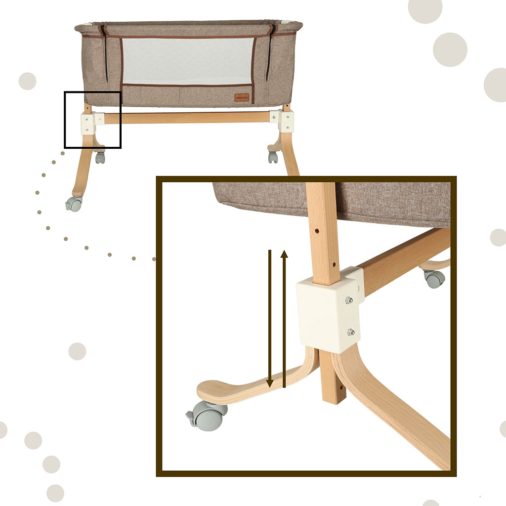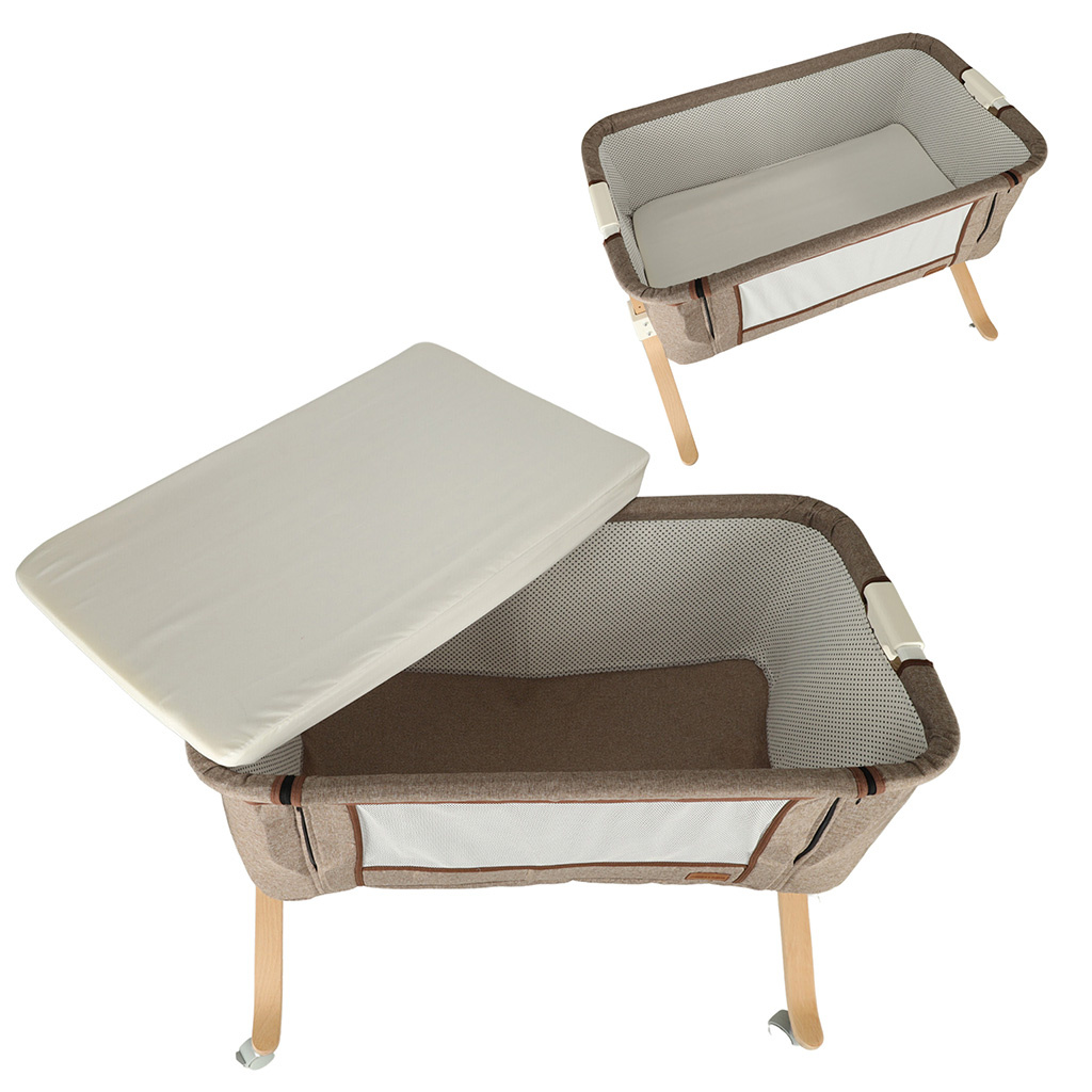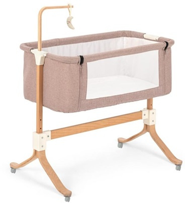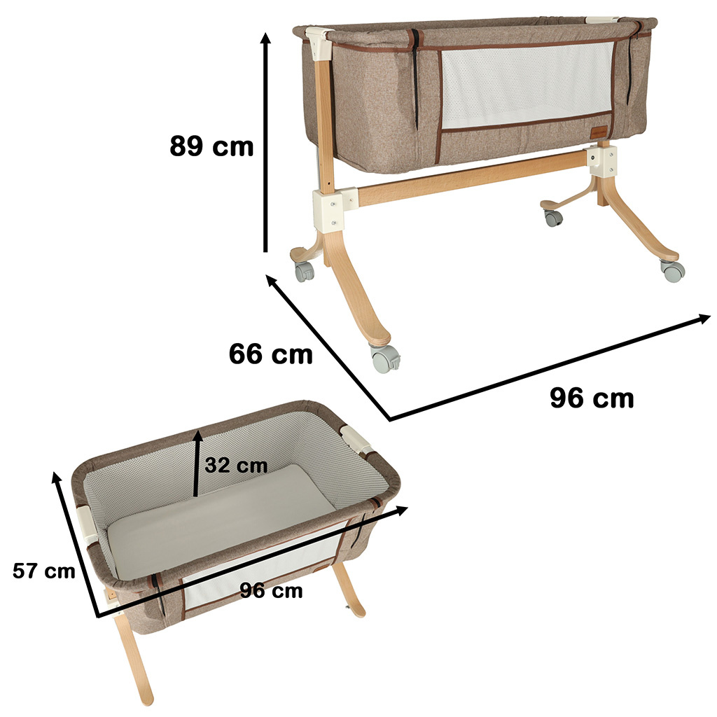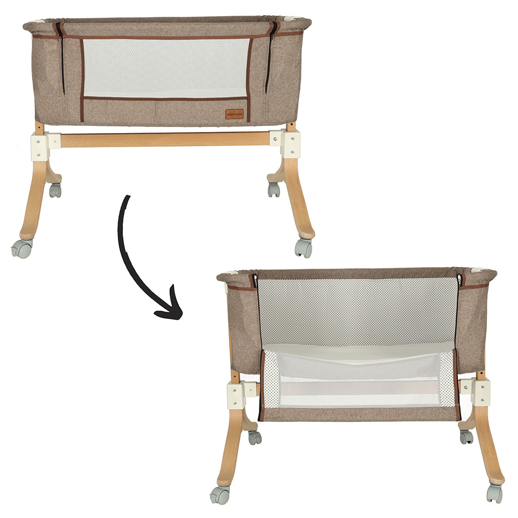 Die mitgelieferte Matratze ist 35 cm dick und daher sehr bequem. außerdem lässt das Netzfenster an der Vorderseite der Wiege so viel Frischluft wie möglich an das liegende Baby heran, was die Überwachung des Kindes erleichtert.
