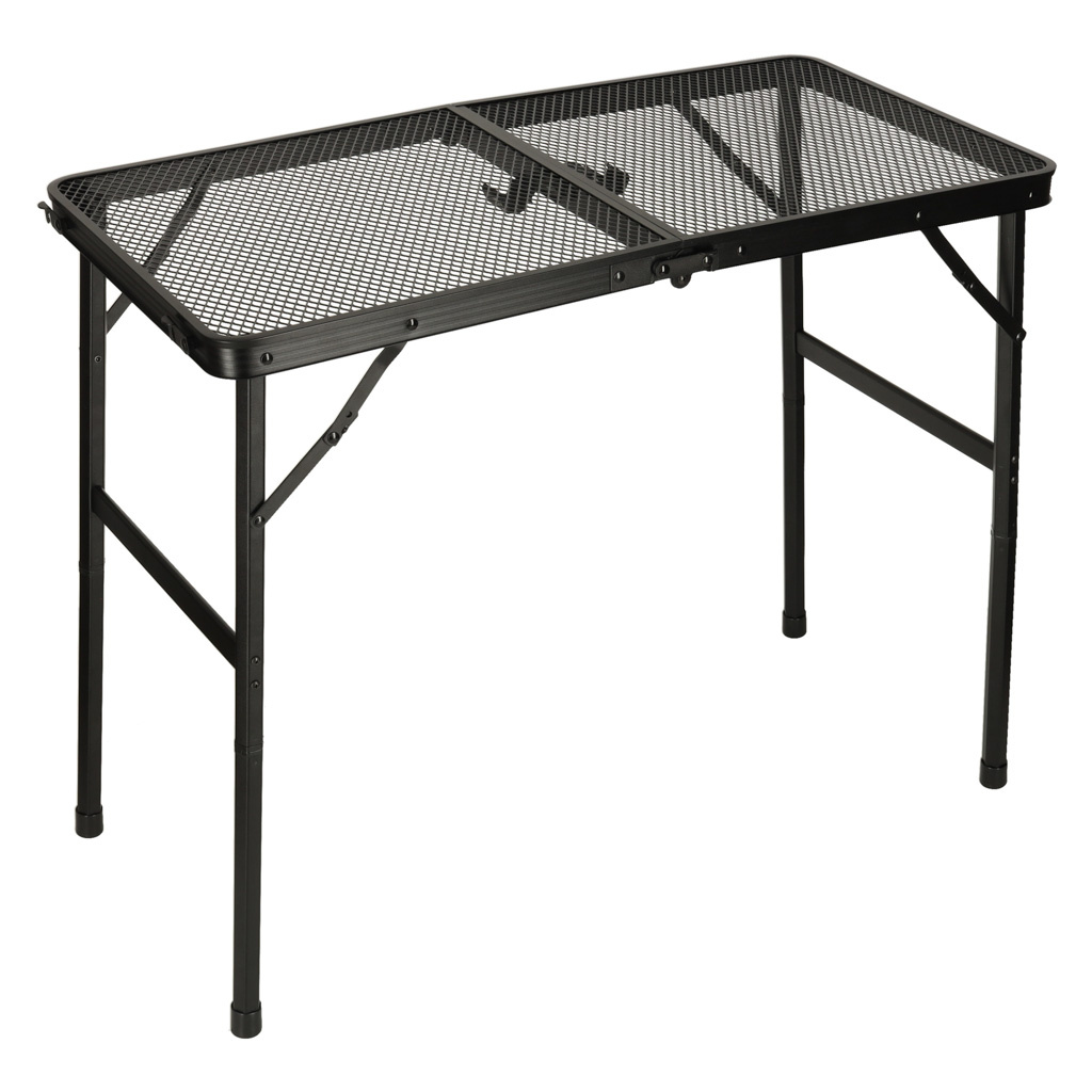- Lehká a odolná konstrukce - stůl z hliníku s ocelovými výztuhami kombinuje mobilitu s robustností a zaručuje pohodlí v terénu