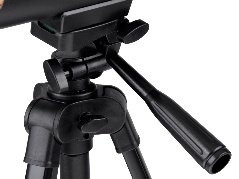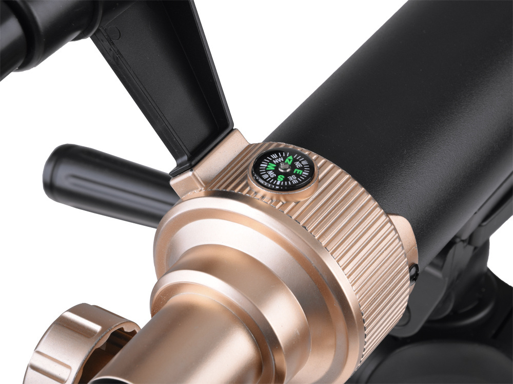 Statyw aluminiowy o wysokości 1,3 m zapewnia stabilność, a jego konstrukcja pozwala na płynne obracanie teleskopu w zakresie 360° oraz regulację kąta nachylenia. Dzięki blokadom i regulacjom teleskop można łatwo dopasować do warunków obserwacyjnych.