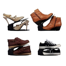Zmniejsz ilość miejsca potrzebnego na twoje obuwie o połowę dzięki tej sprytnej sztuczce! Organizator do butów pozwala umieścić dwie pary butów w tej samej przestrzeni, w której normalnie byś zmieścił tylko jedną parę. Jednocześnie buty sa bezpieczne i nie brudzą innych butów.Cechy produktu: - Solidna konstrukcja z antypoślizgową powierzchnią - Materiał: tworzywo sztuczne - kolor: niebieski / czarny - Wymiary: 25 x 10 x 12cm - Waga: 136g