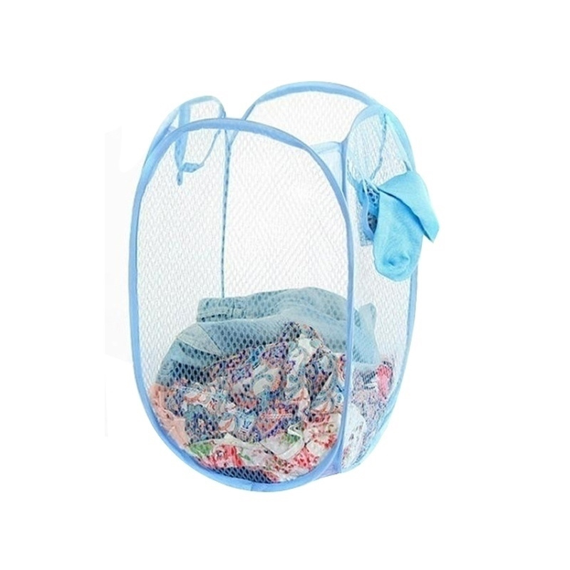 Składany pojemnik na zabawki/odzież. Bardzo pojemny, wyposażony w dwa uchwyty, łatwy do przenoszenia. Możliwość złożenia na płasko. Cechy produktu: - duża pojemność - wymiary po rozłożeniu: 30x30x48(w) cm - wymiary po złożeniu: 16x16 cm - wykonanie: siatka + wytrzymałe tworzywo tekstylne - dodatkowa boczna kieszeń