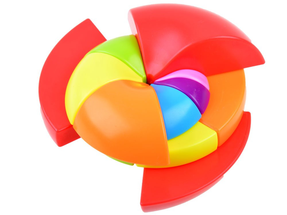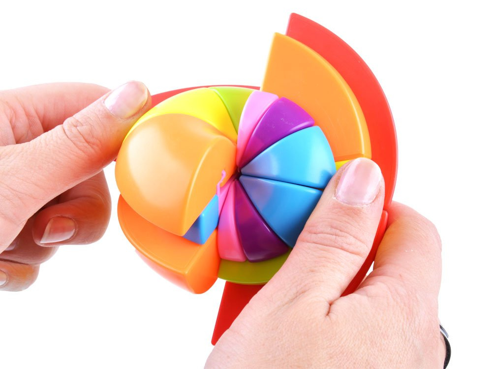 Der asymmetrische Würfel stellt eine neue Ebene des intellektuellen Vergnügens dar. Das Spielzeug schult vor allem die Konzentration und die Wahrnehmungsfähigkeit, fördert die Kreativität und die manuelle Geschicklichkeit. Sie beeinträchtigt die Fähigkeit zum logischen und räumlichen Denken.