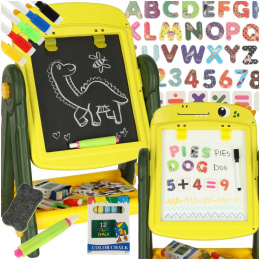 Nechte své dítě rozvíjet se hrou! Našeoboustranná magnetická tabule je ideální pro učení písmen, kreslení a hraní s magnety. Jedna strana je pokrytakřídovým povrchem, druhá je magnetickáza sucha stíratelná tabule, na kterou lze psát fixami a připevňovat magnetické prvky. Je to funkční, bezpečná a atraktivní vzdělávací pomůcka, která roste s vaším dítětem.