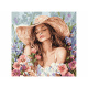 Obraz na płótnie z drewnianą ramą "Dziewczyna w kapeluszu wśród kwiatów"