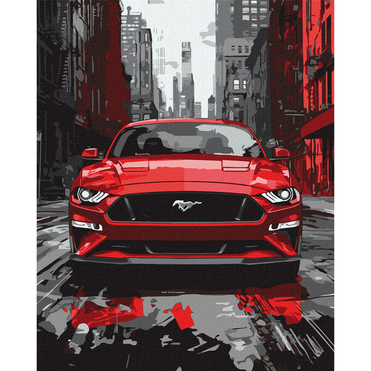 Obraz na płótnie z drewnianą ramą " Czerwony mustang"