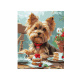 Obraz na płótnie z drewnianą ramą "Podwieczorek z yorkiem "