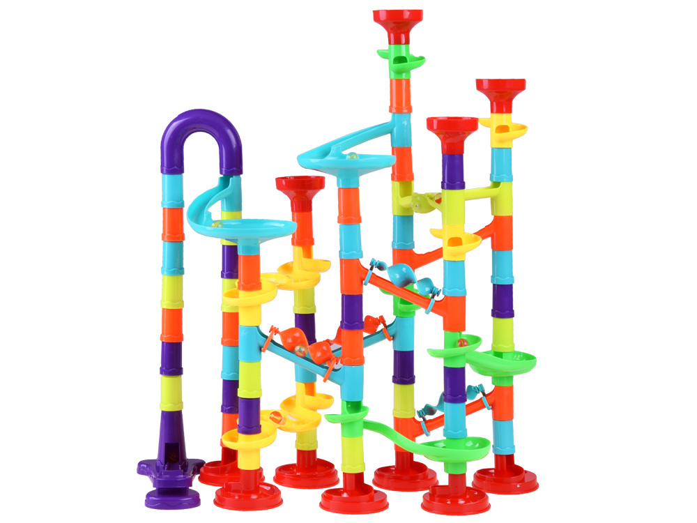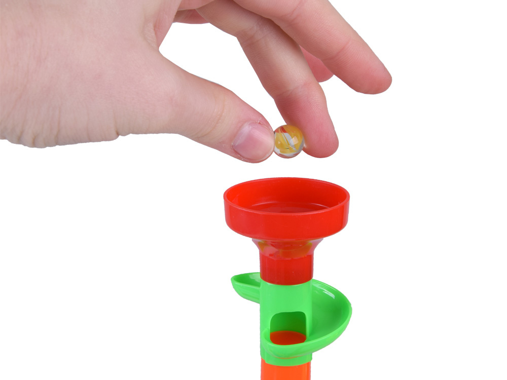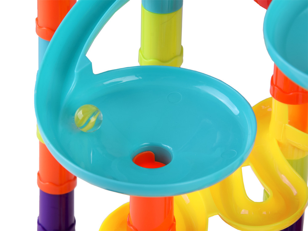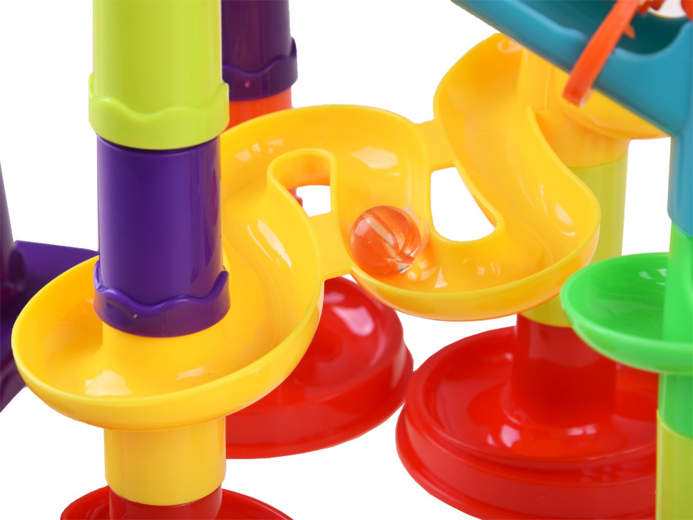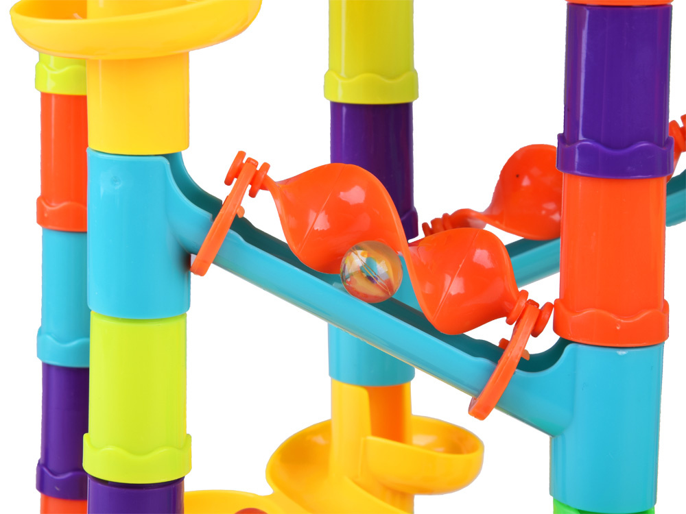 Die113-teilige Spiral-Kugelbahn ist ein Set, das für stundenlangen Spielspaß sorgt. Die Bahn besteht aus vielen bunten Elementen, darunter Abschussvorrichtungen und Kugeln, mit denen das Kind einzigartige und unwiederholbare Bahnen schaffen kann.Die Kinder können das in der bebilderten Anleitung gezeichnete Modell nachbauen, das ein Beispiel für eine Bahn mit allen Elementen zeigt, oder sie können experimentieren und ihre eigenen Konstruktionen bauen: Rutschen, Brücken, Säulen, Drehkreuze, Doppelspiralen und Schornsteine können auf unterschiedliche Weise kombiniert werden.Der Parcours muss so konzipiert und gebaut sein, dass der Ball die gesamte Strecke zurücklegen kann.Baue verschiedene Bahnen und beobachte, wie die Bälle hoch und runter fliegen, sich überall hin bewegen und schnell sind.Das Spielzeug fördert die Kreativität, das räumliche Vorstellungsvermögen und entwickelt die manuellen Fähigkeiten.Beim Spielen entwickelt das Kind auch logisches Denken, Planung, psychomotorische Koordination und motorische Fähigkeiten.