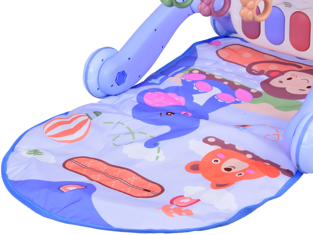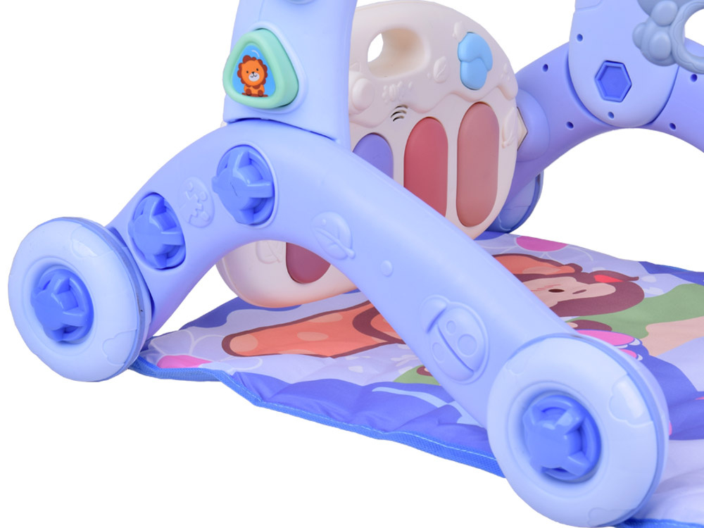 Bezpieczeństwo i komfort: Miękka mata z uroczymi wzorami tworzy wygodne miejsce do zabawy, a solidna konstrukcja chodzika zapewnia stabilność i bezpieczeństwo podczas pierwszych kroków dziecka. Bezpieczne opływowe kształty, w dostosowanych rozmiarach dla dziecka.