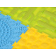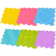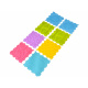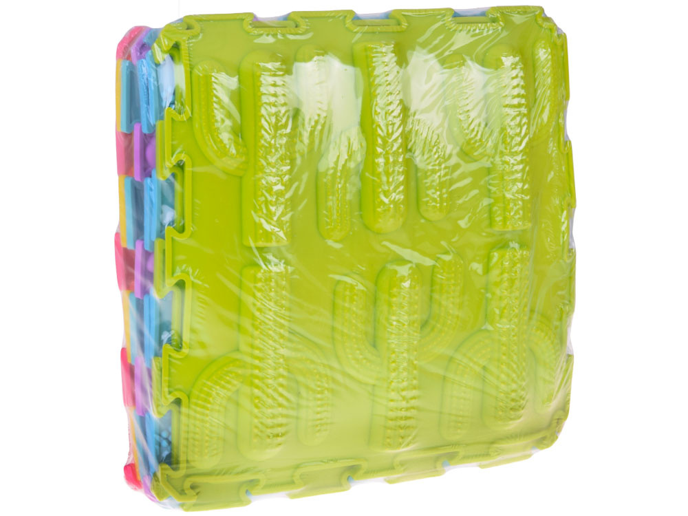 Składa się z 8 puzzli o wymiarach 24,5 cm x 24,5 cm i grubości 1 cm. Każdy element wykonany jest w pastelowych kolorach i posiada różnorodne wzory oraz wypukłości, które stymulują zmysły dziecka podczas chodzenia i ćwiczeń.