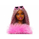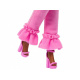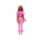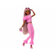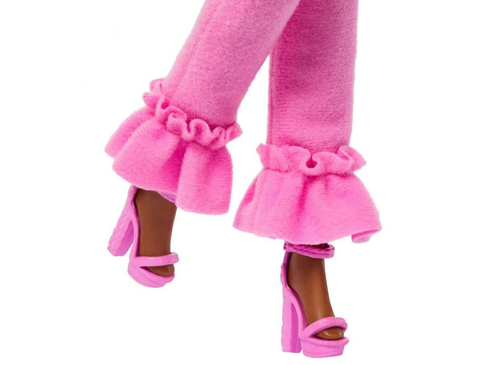 Barbie w tej edycji zachwyca od stóp do głów charakterystycznym różowym strojem. Jej stylizacja to połączenie nowoczesnych fasonów i ciekawych tekstur – zestaw tworzą różowe spodnie z falbankami przy nogawkach oraz dopasowana bluzka z futrzaną górą, która dodaje całości modowego wyrazu.