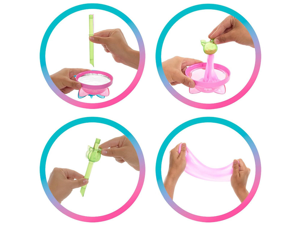 Zestaw skrywa aż 8 elementów do odkrycia, które wprowadzą dziecko w słodki świat zapachów, kolorów i uroczych detali. Opakowanie w formie kubka ma przezroczystą pokrywkę z kocimi uszkami – po jej zdjęciu dzieci odnajdą błyszczący slime, miękki i plastyczny, który zapewnia mnóstwo radości z zabawy dotykiem.