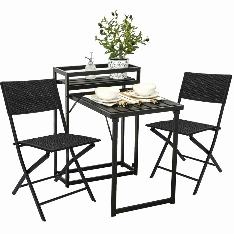 Zestaw ten: Łączy w sobie doskonałą funkcjonalność z nowoczesnym designem. To łatwe w utrzymaniu meble ogrodowe. Zapewnia stabilność i przyczynia się do znacznego zwiększenia komfortu siedzenia. Jest bardzo łatwy w czyszczeniu co sprawia, że małym nakładem środków i czasu meble będą cały czas lśniły jak nowe Stół składany z kwietnikiem 84x59x84cm/h Krzesełka składane 58x45x78cm/h