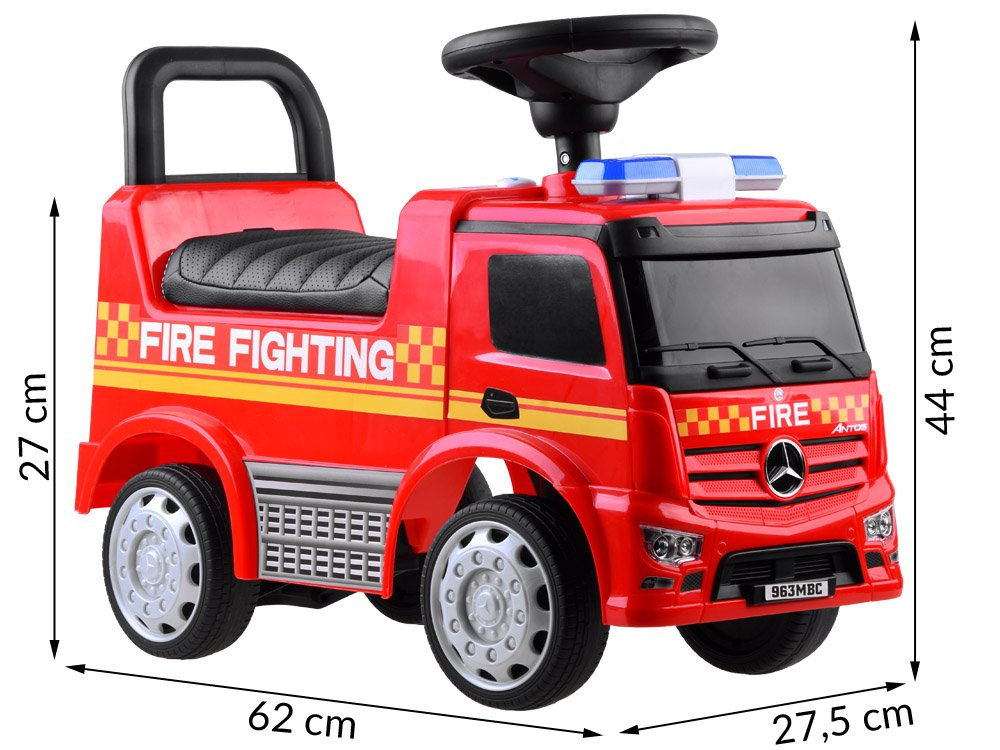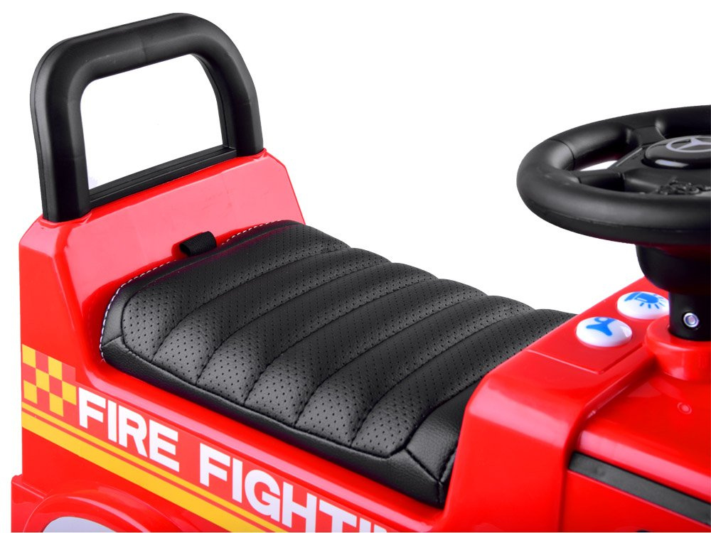 Das sensationelle lizenzierte Mercedes-Auto ist ideal als erstes Fahrzeug für Ihr Kleinkind. Wie es sich für ein echtes Feuerwehrauto gehört, ist es mit Licht- und Tonsignalen ausgestattet. Das Auto ist ausschließlich aus hochwertigem Kunststoff in intensiven Farben gefertigt. Das Ein- und Aussteigen fällt Ihrem Kind nicht schwer, und der bequeme Sitz mit Rückenlehne sorgt für eine komfortable und sichere Fahrt. Eine spezielle Verriegelungsvorrichtung verhindert, dass das Fahrzeug während der Fahrt rückwärts rollt.