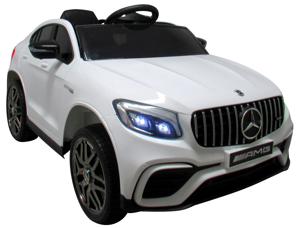 odel MERCEDES GLC63sBeleuchteteFront- und Rücklichter, Türöffnung, Musik, Hupe Das Fahrzeug kann entweder per Fernbedienung (durch die Eltern) oder durch das Kind selbst gesteuert werden, wenn es hinter dem Lenkrad sitzt. Mit der Fernbedienung kann man vorwärts und rückwärts fahren und nach rechts und links abbiegen.