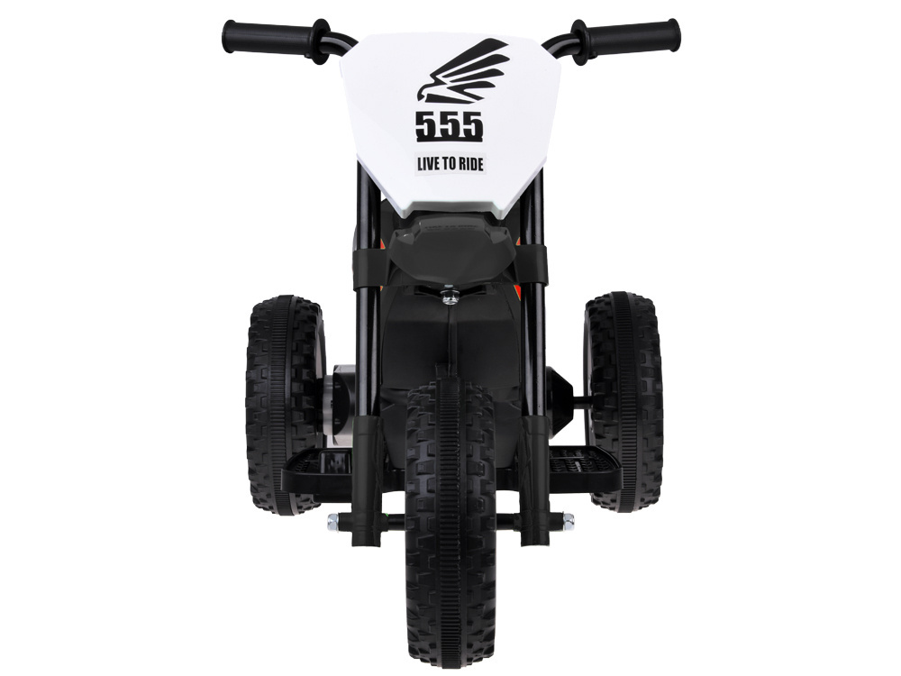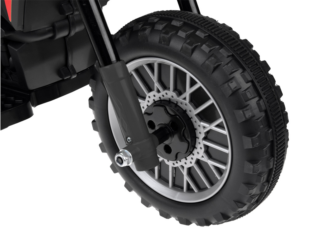 Koła motorku otoczone są opaską, która ma za zadanie tłumić drgania i głośną jazdę po twardym, nierównym terenie. Szeroko rozstawione tylne koła gwarantują stabilność a przy tym bezpieczeństwo dziecka podczas zabawy.