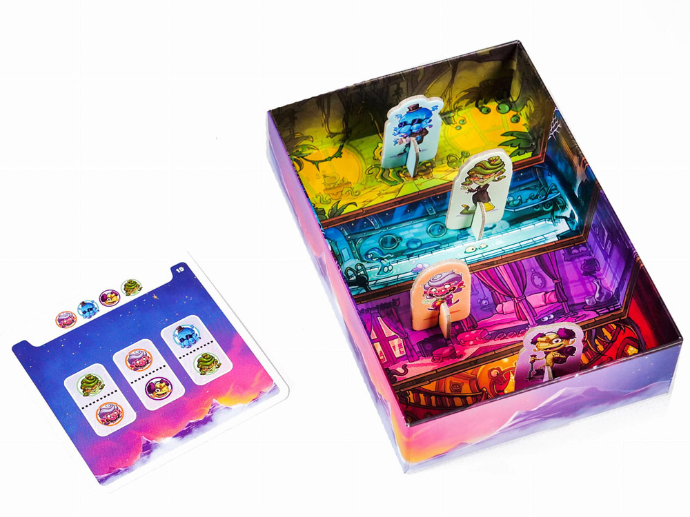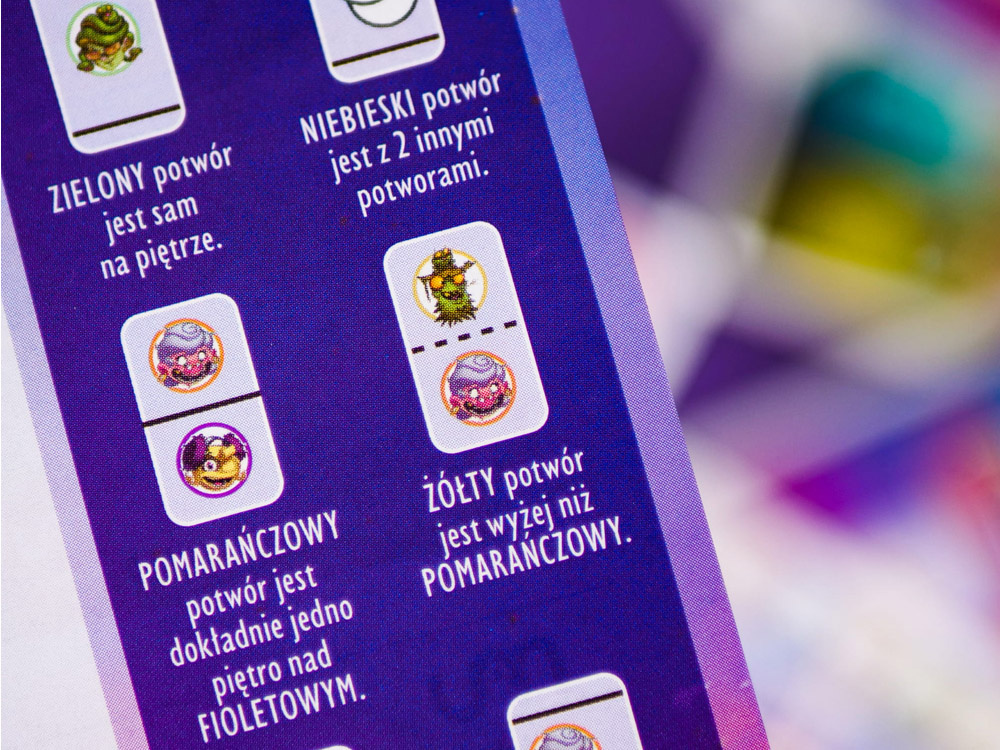 Prowadzisz hotel dla wyjątkowo wymagających gości – potworów, które mają swoje specyficzne preferencje dotyczące zakwaterowania. Twoim zadaniem jest rozmieszczenie ich w pokojach zgodnie z przedstawionymi na kartach zasadami. Niektórzy goście chcą mieszkać tylko na określonym piętrze, inni preferują towarzystwo konkretnego potwora, a niektórzy wolą pokój tylko dla siebie. Każda łamigłówka ma jedno prawidłowe rozwiązanie, które znajdziesz na odwrocie karty.