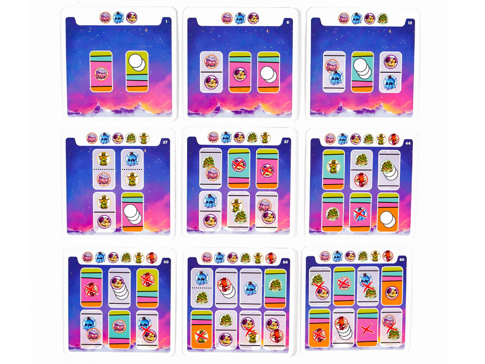 Dobierz kolejną kartę i rozwiązuj zagadki, starając się ułożyć jak najwięcej poprawnych układów.