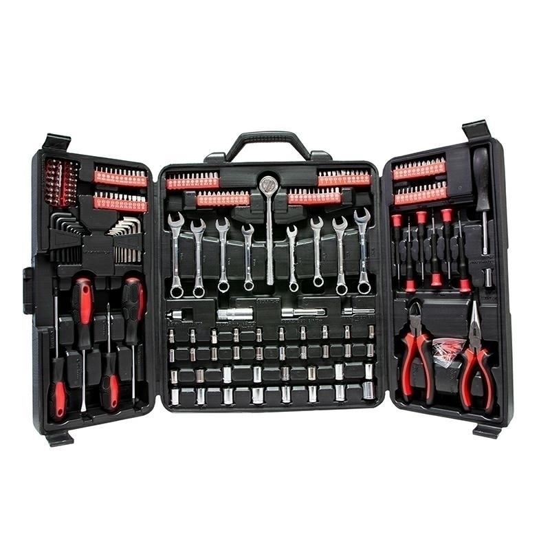 Zestaw narzędzi wykonanych z najwyższej jakości materiałów w wygodnej walizce z możliwością zawieszenia na ścianie warsztatu. Zestaw zawiera 221 elementów. 1 x 3/8" KLUCZ GRZECHOTKA 4 x ŚRUBOKRĘTY 1 x 1/4" WKRĘTAK DO BITÓW 6 X ŚRUBOKRĘTY PRECYZYJNE (płaskie: 1.5, 2, 2.5, 3mm, krzyżakowe: #00, #0) 16 x ZESTAW IMBUSÓW 1.5-6MM 1/16-1/4" 8 x KLUCZ PŁASKO-OCZKOWY 10, 12, 13, 14mm, 3/8, 7/16, 1/2, 9/16" 120 x BITY 25MM 1 x RAMIĘ PRZEDŁUŻAJĄCE 60MM 20 x AKCESORIA W WORECZKU (kołki, gwoździe, wkręty) 1 x SZCZYPCE DŁUGIE 150mm 1 x OBCINACZKI 150mm 24 x 1/4" NASADKI 4-13MM 5/32-1/2" 12 x 3/8" NASADKI 8-17MM 5/16-11/16" 1 x 3/8" KLUCZ DO ŚWIEC 16MM 1 x 3/8" RAMIĘ PRZEDŁUŻAJĄCE 75MM 1 x 1/4" RAMIĘ PRZEDŁUŻAJĄCE 50MM 1 x 3/8"&1/4" PRZEJŚCIÓWKA 1 x 1/4" NASADKA DO BITÓW 1 x WALIZKA Wymiary walizki: 44x37,5x8,5cm Ilość szt. w kartonie: 4 Ilość szt. na palecie: 90