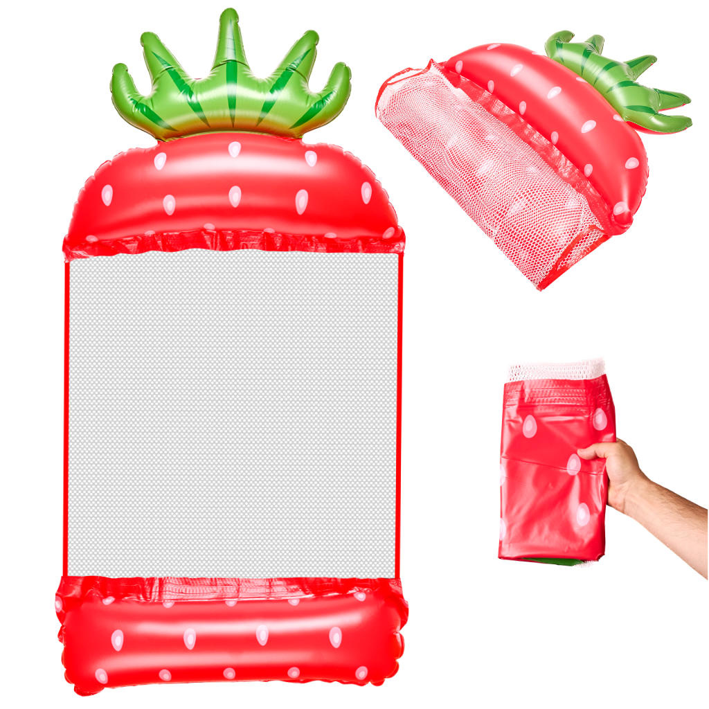 - Nafukovací houpací síť ve tvaru jahody - kombinace relaxace a zábavy na vodě s veselým letním designem, díky kterému na pláži nebo u bazénu vyniknete.