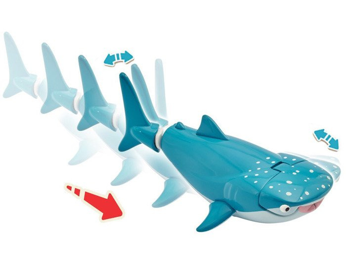 Es ist ein Vollplastikspielzeug, das mit den Flossen schlägt, wenn es reitet.