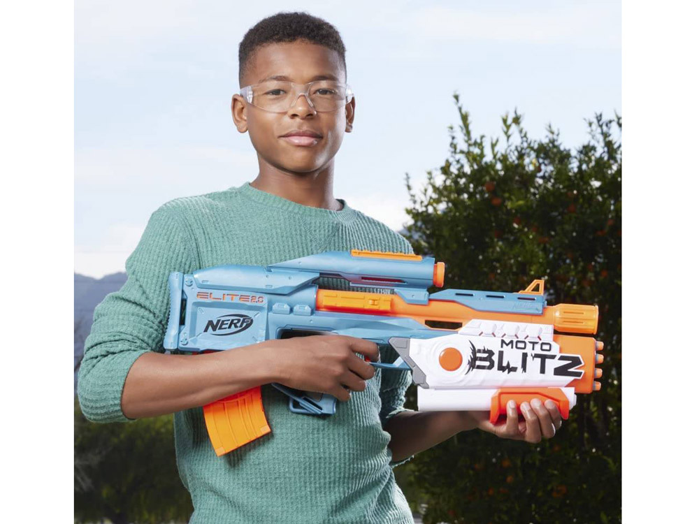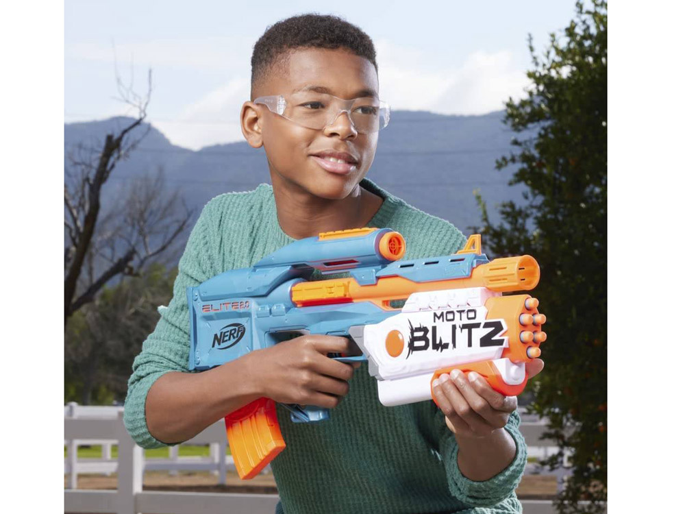 Nerf Elite 2 2 in 1 automatische Pistole.0 Motoblitz - Ein revolutionärer Blaster, der bis zu zwei Feuermodi bietet, um dir in jeder Nerf-Schlacht einen Vorteil zu verschaffen! Tauchen Sie ein in die spannende Welt des Kampfes dank Hasbro, die diese Waffe für alle Schießbegeisterten anbietet.