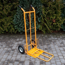 Praktyczny wózek transportowo-magazynowy wykonany ze stali co daje możliwość załadunku do 250 kg. Przeznaczony do przewożenia ciężkich pakunków - paczek, kartonów, worków oraz wielu innych przedmiotów i towarów. Wózek typu młynarka wyposażony dodatkowo w rozkładany podest. Wykorzystywany w wielu miejscach pracy - np. na poczcie, magazynie, ogrodzie etc. Antypoślizgowe uchwyty na rączkach dodatkowo ułatwiają pracę. Kółka z bieżnikiem zapewniają doskonałą przyczepność do podłoża. Antypoślizgowe uchwyty na rączkach dodatkowo ułatwiają pracę. Specyfikacja: udźwig z podestem - 250kg udźwig bez podestu - 200kg wysokość - 125cm szerokość - 59cm głębokość max -86cm średnica koła - 25cm waga - 11kg