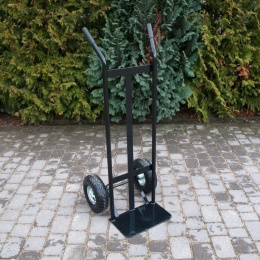 Praktyczny wózek transportowo-magazynowy wykonany ze stali co daje możliwość załadunku do 220 kg. Przeznaczony do przewożenia ciężkich pakunków - paczek, kartonów, worków oraz wielu innych przedmiotów i towarów. Wykorzystywany w wielu miejscach pracy - np. na poczcie, magazynie, ogrodzie etc. Antypoślizgowe uchwyty na rączkach dodatkowo ułatwiają pracę. Kółka z bieżnikiem zapewniają doskonałą przyczepność do podłoża. Antypoślizgowe uchwyty na rączkach dodatkowo ułatwiają pracę. Specyfikacja: udźwig max - 220kg wysokość - 118cm szerokość - 47cm głębokość max -49cm pneumatyczne koła o średnicy - 25cm waga - 10kg