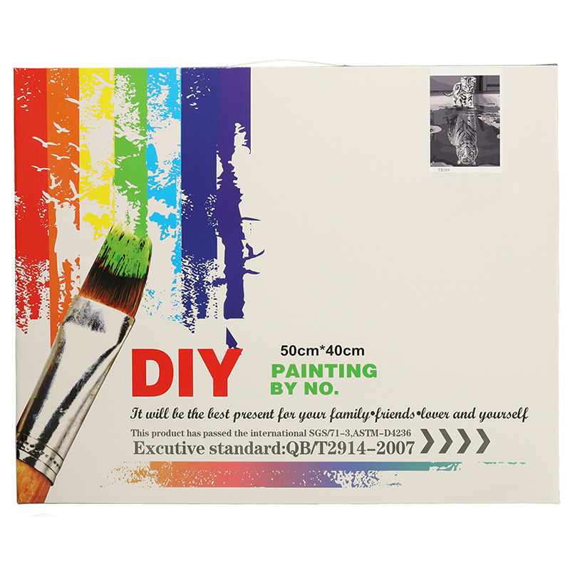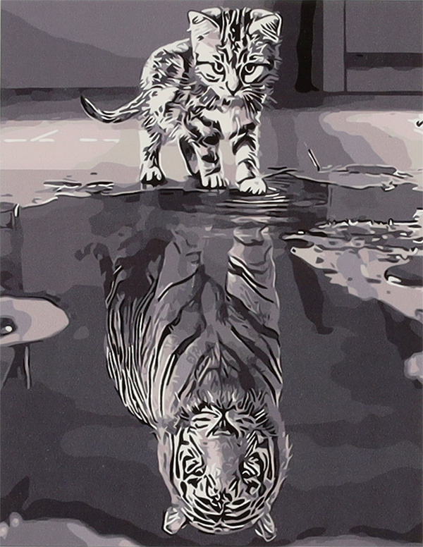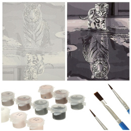 Malowanie po numerach - trend, który pokochali ludzie na całym świecie. Polega na kolorowaniu odpowiednich pól za pomocą farbek - oznaczenia cyfrowe ułatwiają cały proces. W zestawie farby i trzy pędzle. Wzór: kot i tygrys. Wym. płótna: 40x50cm.Vollständige Beschreibung