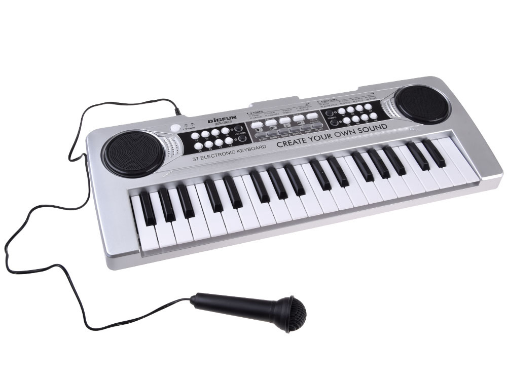 Srebrny Mini Keyboard 37-klawiszowy z mikrofonem