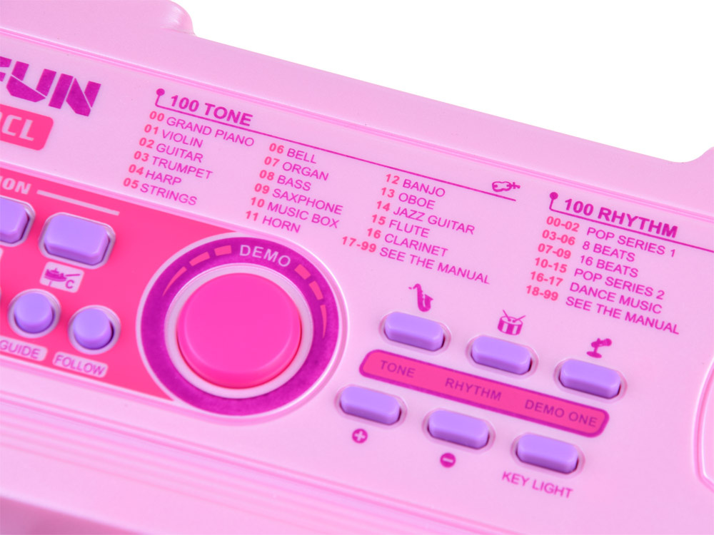 Diepinke BigFun-Tastatur mit beleuchteten Tasten ist für jeden kleinen Star. Ein Spielzeug mit vielen musikalischen Funktionen, das jedes kleine Mädchen unterhalten wird. Ein Spielzeug mit 49 Tasten, 100 Backing Tracks und zwei Lautsprechern sorgt für gute Unterhaltung, Hauptsache, man fühlt sich wie ein Musiker : )