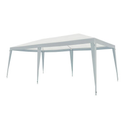 Pawilon ogrodowy z wodoodpornego polietylenu ok. 3x6m wysokość 2,5m. Prosty w montażu. Odpowiedniej wytrzymałości elementy konstrukcyjne (średnica rurek 31/24/19mm) warunkują o stabilności pawilonu. Konstrukcja wykonana ze stali lakierowanej na kolor biały metodą proszkową. Odpowiedni podczas imprez plenerowych. Cechy produktu: - trwały i stabilny pawilon ogrodowy - przeznaczony do ogrodu lub na działkę - do wykorzystania także jako namiot handlowy - ochrona przed słońcem i deszczem - stabilna konstrukcja - solidny stelaż - wytrzymały, odporny na warunki atmosferyczne materiał PE 100 g/m2 - kolor biały W zestawie: - pawilon ok. 3x6m (dach, stelaż, zestaw mocujący = linki + kotwy) - instrukcja montażu PL Wymiar kartonu (dł x gł x szer): 112x20x23 cm ilość na palecie: 21 szt.