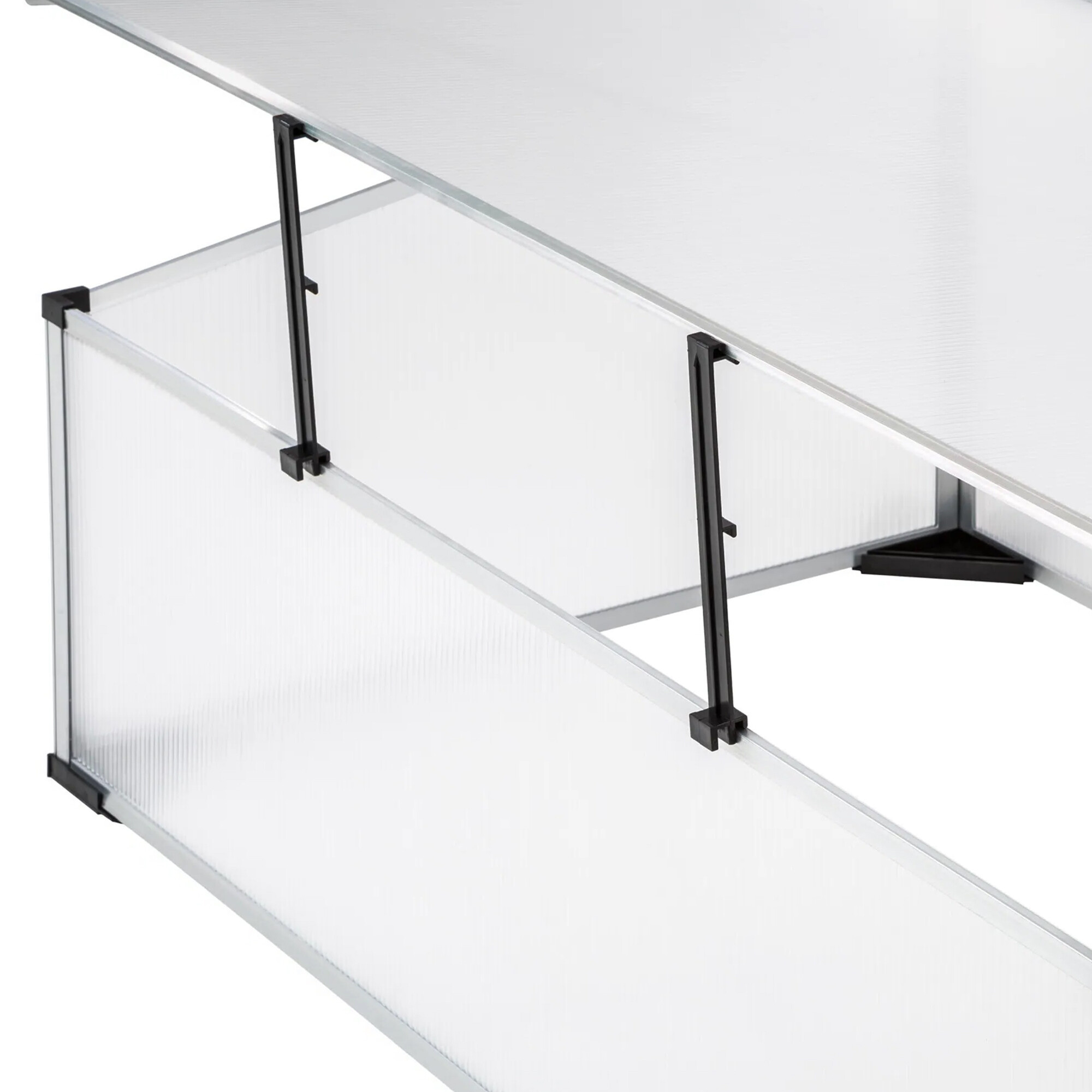 Der Rahmen des Frühbeets besteht aus Aluminiumprofilen, die sich durch ihr geringes Gewicht und ihre lange Lebensdauer auszeichnen. Darüber hinaus sind sie korrosionsbeständig, was besonders wichtig ist, um ein feuchtes Klima im Inneren des Gewächshauses aufrechtzuerhalten.