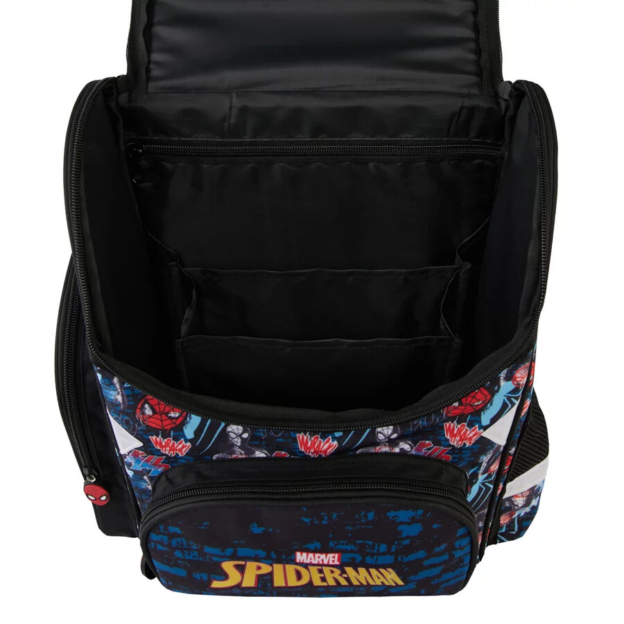 Hauptfach mit Trennwänden, verschließbar mit Reißverschluss.