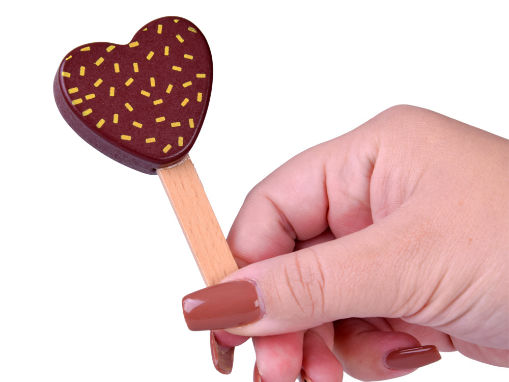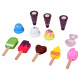 W zestawie znajduje się 8 różnych lodów – pięć na patyku i trzy w rożkach. Lody w rożkach mają gałki mocowane na magnes, dzięki czemu można je łatwo „nakładać” i zdejmować, co sprawia, że zabawa staje się bardziej realistyczna i angażująca.