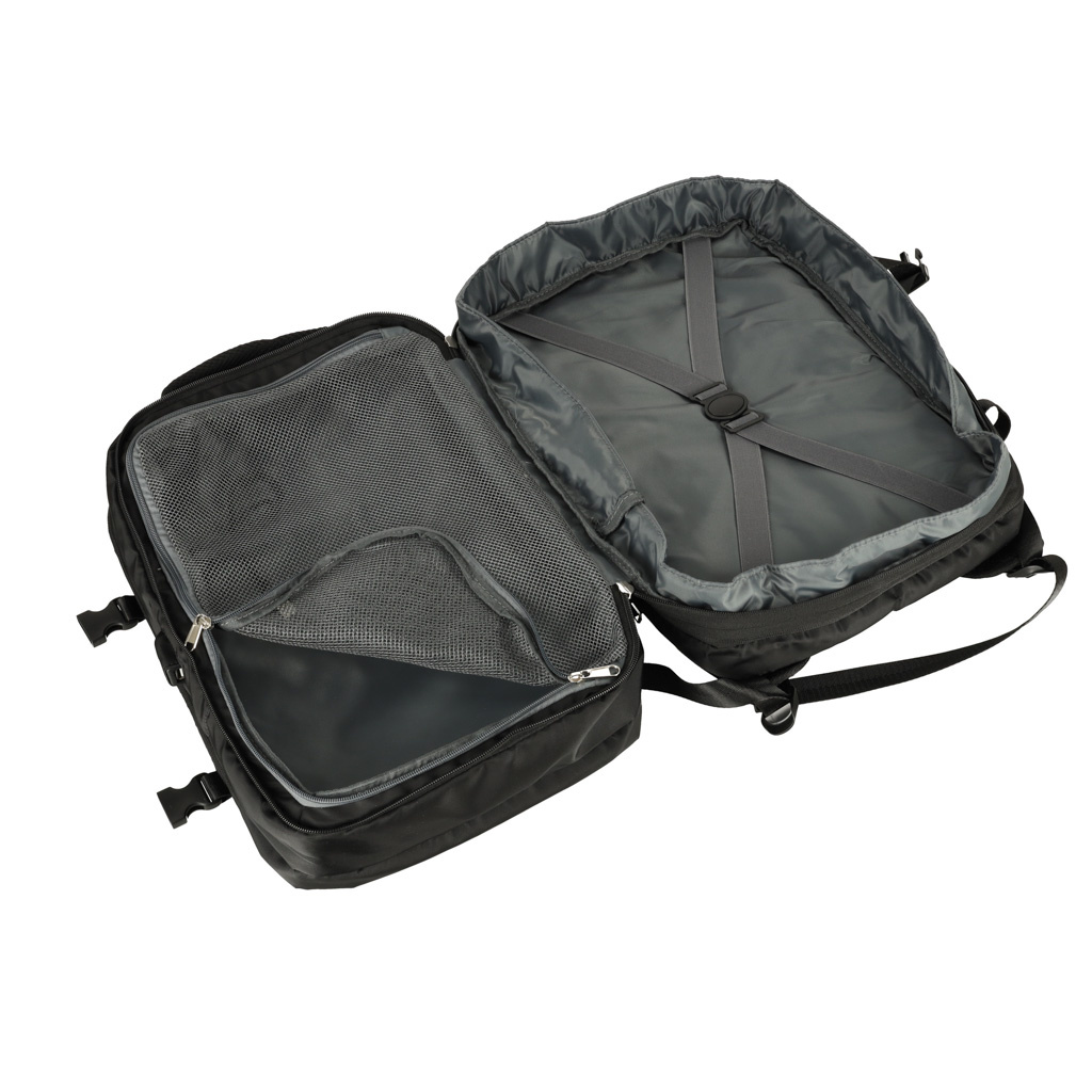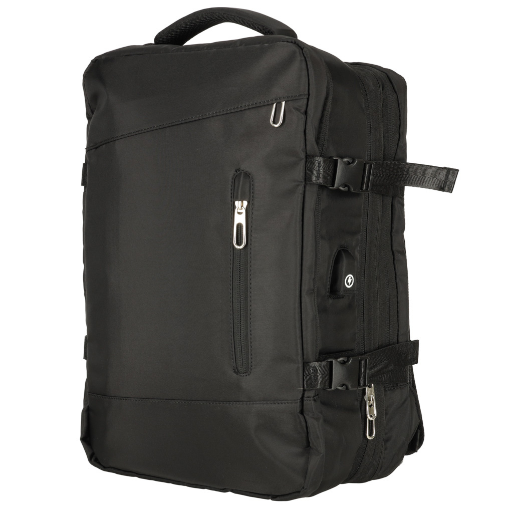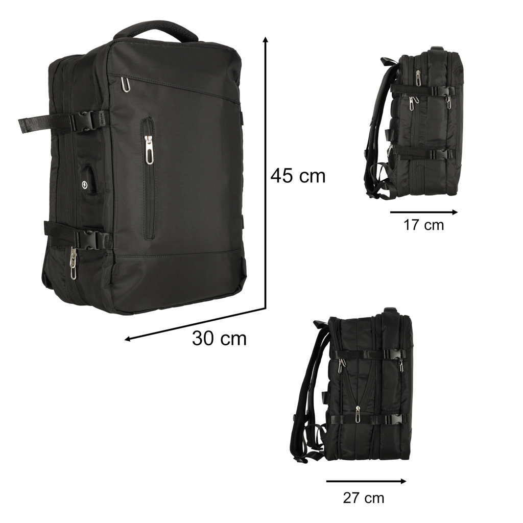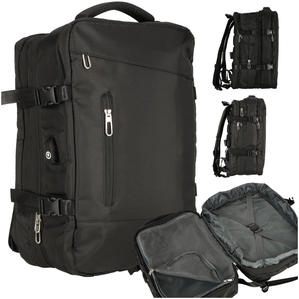 REISELAPTOP RUCKSACK ERWEITERBAR 26-36L USB KABEL GERÄUMIG WASSERDICHT SCHWARZ