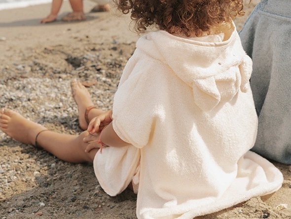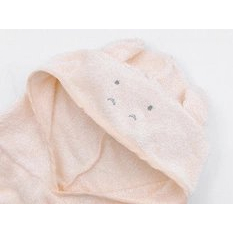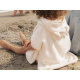 Bardzo delikatny, chłonny i miły w dotyku ręcznik kąpielowy z kapturkiem typu poncho w kolorze popielatym wykonany jest w 100% z frotte bambusa organicznego. Posiada praktyczny kapturek z uroczymi uszkami, który można założyć dziecku na główkę. Ręcznik obszyty jest lamówką, pod pachami posiada zatrzaski umożliwiające zapięcie go z boku. Ponczo jest wielofunkcyjne, może służyć jako ręcznik z kapturem chroniący przed promieniowaniem UV oraz wiatrem na plaży. Idealnie sprawdzi się jako ręcznik kąpielowy w domu czy na basenie. To okrycie kąpielowe jest praktyczne, wygodne i komfortowe.