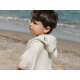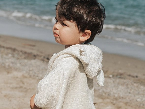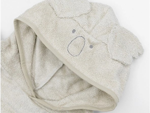 Bardzo delikatny, chłonny i miły w dotyku ręcznik kąpielowy z kapturkiem typu poncho w kolorze popielatym wykonany jest w 100% z frotte bambusa organicznego. Posiada praktyczny kapturek z uroczymi uszkami, który można założyć dziecku na główkę. Ręcznik obszyty jest lamówką, pod pachami posiada zatrzaski umożliwiające zapięcie go z boku. Ponczo jest wielofunkcyjne, może służyć jako ręcznik z kapturem chroniący przed promieniowaniem UV oraz wiatrem na plaży. Idealnie sprawdzi się jako ręcznik kąpielowy w domu czy na basenie. To okrycie kąpielowe jest praktyczne, wygodne i komfortowe.