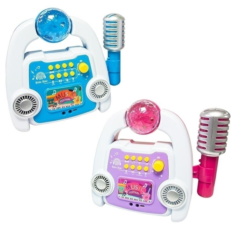 Zestaw karaoke to świetna zabawa dla najmłodszych. Zabawka posiada prawdziwy mikrofon oraz ma funkcję nagrywania głosu. Urządzenie ma domyślnie zaimplementowane podkłady w różnych stylach muzycznych. Istnieje możliwość również podłączenia zewnętrznego źródła dźwięku za pomocą złącza minijack 3,5mm. Specyfikacja: - mikrofon z funkcją nagrywania (kabel o dł. 130cm) - statyw do mikrofonu z regulacją wysokości: 90cm-49cm - 8 piosenek, - 8 melodii, - 9 efektów dźwiękowych (oklaski, śmiech, aplauz) - kolorowe podświetlenie dyskotekowe - efekty zmiany głosu - nagrywanie głosu z możliwościa późniejszego odtworzenia - regulacja głośności - wejście AUX minijack 3,5mm umożliwiające podłączenie zewnętrznego źródła dźwięku (np. telefonu) - podstawka na telefon - zasilanie: bateryjne: 3xAA (brak w zestawie) lub microUSB 5V DC - wymiary stacji do karaoke: 24x22,5x10cm - kabel minijack-minijack 3,5mm o dł.60cm w zestawie Zabawka przeznaczona dla dzieci powyżej 5 roku życia. wymiary opakowania: 30x47,5x11cm Produkt zapakowany w dodatkowy karton - gotowy do wysyłki. Ilość szt. na palecie: 72