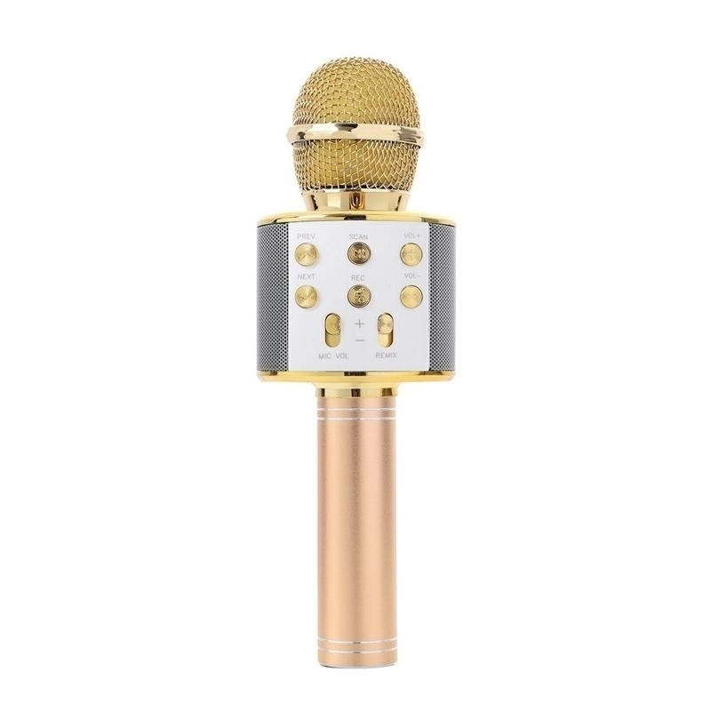Bezprzewodowy mikrofon, który świetnie sprawdzi się podczas karaoke, zabawy z przyjaciółmi i dziećmi. Posiadając odpowiednią aplikację, możemy nagrywać nasze wokale na telefonie (lub lokalnie na kartę microSD). Urządzenie może pełnić rolę głośnika bluetooth. Mikrofon posiada redukcję szumów i wykonany został z wysokiej jakości materiałów. Specyfikacja: Radio FM nagrywanie na telefon lub kartę microSD funkcja selfie - możliwość robienia zdjęć telefonem za pomocą przycisku na mikrofonie Slot na karty microSD Slot USB do podłączenia pendrive Moc-5W Pasmo przenoszenia: 100Hz-10kHz Zasilanie: akumulator 18650 1800mAh Efekt pogłosu/echa Efekty zmiany głosu W zestawie kabel USB - microUSB. Wymiary: 23x7,6x7,6cm