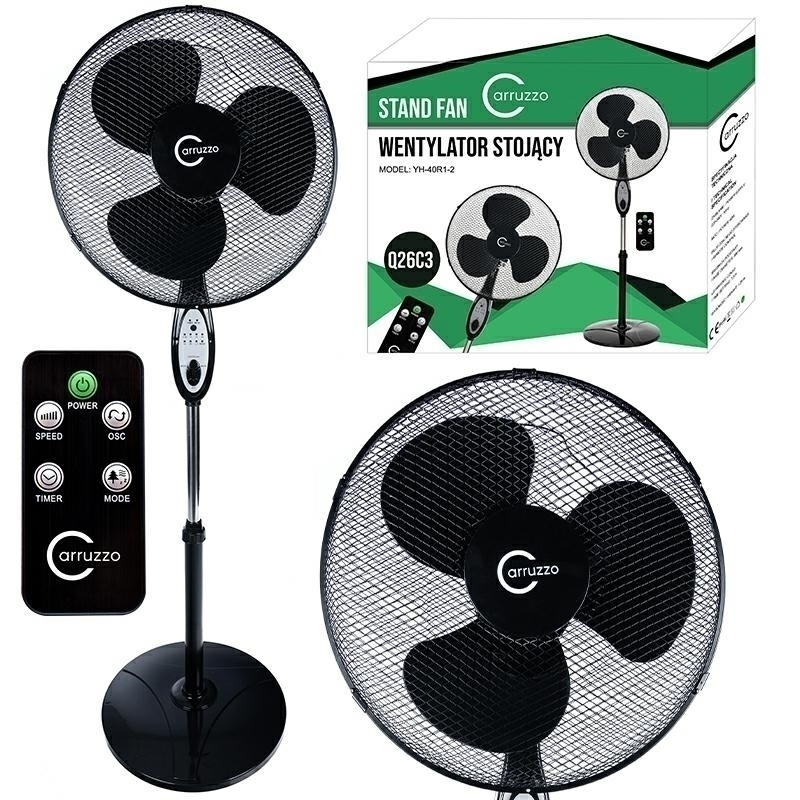 Wentylator stojący z funkcją automatycznej oscylacji. Zwiększa to zasięg oddziaływania urządzenia. Siła nawiewu zapewni przyjemne chłodzenie. Solidna podstawa zapobiega upadkowi, a możliwość regulacji wysokości za pomocą rury teleskopowej, pozwala dodatkowo na ustawienie odpowiedniego pułapu nawiewu. Marka: Carruzzo Cechy produktu: - regulacja wysokości: od 105 do 125cm - średnica głowicy: 44 cm - średnica podstawy: 39cm - przepływ powietrza: 3384m3/h - głośność: 53,6dB - regulacja kąta nachylenia głowicy - płynna oscylacja głowicy podczas pracy (sterowana z pilota i panelu) - możliwość blokady oscylacji - 3 stopniowa prędkość nawiewu - mały pobór energii 40W - szybki montaż - 4 przyciski na panelu sterowania: SPEED/ON, OFF, MODE, SWING - zasilanie 220-240V - dł. kabla zasilającego: ok. 150cm Wentylator można kontrolować za pomocą pilota oraz ręcznie, wybierając na jednostce sterującej odpowiednie przyciski. Funkcje pilota: TIME - możliwość ustawienia automatycznego wyłączania wentylatora od 30 minut do 7,5 godziny, z regulacją co 30 minut SPEED/ON - 3-stopniowa prędkość obrotowa (LOW, MEDIUM, HIGH) MODE - tryb ciągły i interwałowy – wiatrak włącza się na kilka sekund i automatycznie wyłącza OFF - wyłączanie urządzenia SWING- płynna oscylacja głowicy podczas pracy W zestawie: - wentylator - instrukcja obsługi PL - pilot Wymiary kartonu: 53,5x14x46,5cm Produkt zapakowany w dodatkowy karton - gotowy do wysyłki. Ilość szt. na palecie: 42