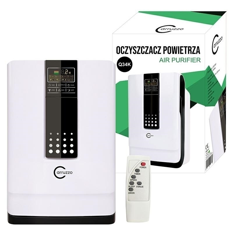 Oczyszczacz powietrza z sześciostopniowym systemem filtracji wyposażony w 2 rodzaje filtrów (I- HEPA + antybakteryjny, II- węglowy + zimnej katalizy), jonizację oraz sterylizację UV. Marka: Carruzzo Oczyszczacz powietrza skutecznie usunie z powietrza roztocza, bakterie, kurz, pyłki, sierść zwierząt, zarodniki grzybów, lotne związki organiczne, dym papierosowy, smog (cząsteczki PM 2,5) itp. Urządzenie przeznaczone dla alergików, astmatyków, posiadaczy zwierząt i wszystkich, którym zależy na czystym powietrzu wokół siebie. Specyfikacja: - moc: 40W - zasilanie: AC 220-230V 50/60Hz - regulacja intensywności pracy (3 stopnie) - monitorowanie czystości powietrza - automatyczne dostosowanie trybu pracy do jakości powietrza - timer 1-12h - pilot zdalnego sterowania - tryb nocny - wymiary: 33x51x18cm - 6 stopniowy system oczyszczania powietrza: I) sterylizacja UV - światło ultrafioletowe 245nm zabija bakterie i wirusy II) jonizacja - tlen naładowany ujemnymi cząsteczkami usuwa z powietrza kurz, bakterie, wirusy i dym III) filtr HEPA - eliminuje z powietrza cząstki większe niż 0,01µm - pył, bakterie, grzyby, wirusy, alergeny IV) filtr węglowy - aktywny węgiel absorbuje nieprzyjemne zapachy oraz pył V) filtr przeciwdrobnoustrojowy - skutecznie zabija bakterie z powietrza VI) zimna kataliza - usuwa siarkowodór, amoniak, benzen, formaldehydy i inne szkodliwe substancje Ilość szt. na palecie: 30