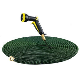 Wysokiej jakości rozciągliwy wąż ogrodowy PRESTIGE z 9-funkcyjnym pistoletem. Wąż został wykonany z wysokiej jakości bardzo odpornego tworzywa PCV gwarantującego długą i bezproblemową pracę. Wąż świetnie sprawdzi się do nawadniania roślin na tarasie i balkonie lub do zraszania małych powierzchni np. ogródków przydomowych. Marka: CarruzzoCechy produkty: - max długość po rozciągnieciu: 60m długosć bazowa ok: 20m - 9-funkcyjny pistolet z automatyczną blokadą w zestawie - regulacja ciśnienia - wysokiej jakości wykonanie - jedna strona węża zakończona metalowym przyłączem 3/4 na kran - druga strona zakończona metalowym przyłączem 3/4 do pistoletu, przyłącze dodatkowo wyposażone w zawór kulowy - wykonany z odpornego tworzywa PCV Ilość szt. na palecie: 120