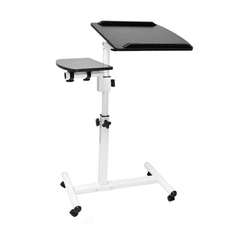 Uniwersalny stolik do laptopa na kółkach. Posiada 2 blaty z niezależnie od siebie regulowanym położeniem oraz wysokością. Kompaktowe rozmiary sprawiają, że świetnie sprawdzi się w nawet najmniejszym pomieszczeniu. Kółka posiadają blokadę zapobiegającą niepożądanemu przemieszczaniu się stolika podczas użytkowania. Specyfikacja: - 2 regulowane niezależnie od siebie blaty - 4 kółka z blokadą - łatwy i szybki montaż - 2 listwy przy większym blacie zapobiegające zsuwaniu się z niego przedmiotów (np. laptopa) - boczny blat może służyć np. jako podstawka pod myszkę - wymiary większego blatu: 40 x 40cm - wymiary mniejszego blatu: 40 x 20cm - regulowana wysokość: 63-97cm - zestaw do samodzielnego montażu - śrubokręt w zestawie wymiary opakowania: 66x50x11cm Ilość szt. na palecie: 46