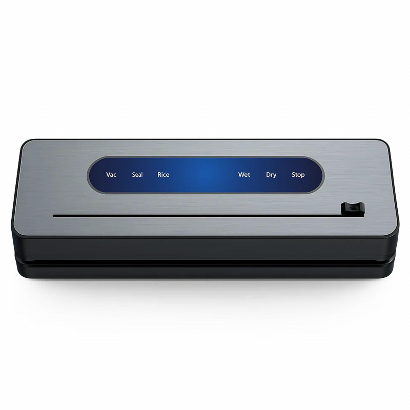 Dzięki technologii próżniowego pakowania, przechowywane jedzenie dużo dłużej zachowuje świeżość oraz nie traci smaku i aromatu (jednocześnie inne produkty z lodówki nie przesiąkają zapachem zapakowanej żywności). Próżniowe pakowanie wykorzystywane jest m.in. podczas gotowania metodą sous-vide. Tak przygotowywane potrawy są równomiernie ugotowane, a zawarty w nich płyn zostaje cały czas wewnątrz nadając smaku oraz soczystości. Wymiar: 36x11x5cm Moc: 120W Moc ssania: ok. 62kPa Długość kabla zasilającego: 1m Lampka UV do sterylizacji W zestawie 50 torebek foliowych gratis! Wymiary opakowania: 37,5x16x7cm ilość na palecie: 300 szt