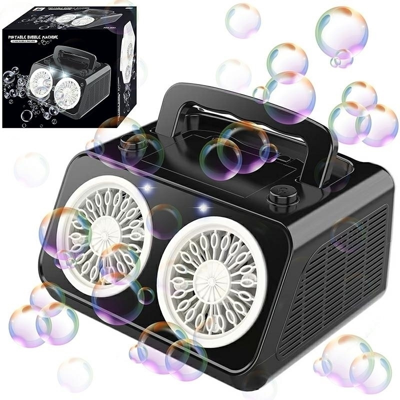 Mega wydajna wytwornica baniek mydlanych to idealny pomysł na urozmaicenie każdej imprezy. Po dodaniu specjalnego płynu lub wody z mydłem wytwarza duże ilości baniek oraz rozwiewa je dookoła za pomocą cichego wentylatora. Urządzenie wyposażone w dwie osobne dysze wytwarzające bańki. Specyfikacja: zasilanie: 6xAA (brak w zestawie) zbiornik 200ml z płynem do baniek w zestawie podświetlenie przy wylocie baniek rączka do przenoszenia specjalna kieszeń na zbiornik zbiornik zabezpieczony przed niekontrolowanym wylaniem wymiary: 21x12x17,5cm wymiary opakowania: 22x19x13cm Zabawka przeznaczona dla dzieci powyżej 3 roku życia. Ilość szt. na palecie: 144