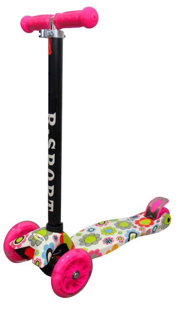 Sportlicher dreirädriger Kinderroller mit einer Tragfähigkeit von bis zu 50 kg.Die beiden Vorderräder sorgen für die Stabilität des Scooters und das Schutzblech am Hinterrad sorgt dafür, dass das Kind bremsen kann.